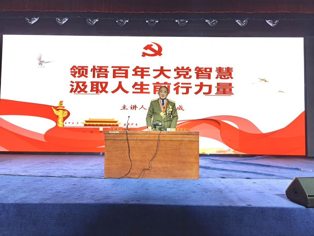 毛老循序善诱,深入浅出地讲述了他通过学习党史、学习伟人事迹,坚定加入党组织、为党和人民奉献一生的信念,结合自身成长发展经历,从修炼思想、灵魂高尚;锤炼人格、理想高远;磨练品性、意志高强;锻炼能力、本领高超等四个方面生动阐释共产党人的信仰、理想、立场和价值观。报告中,毛老不时拿出五六十年前已经泛黄的日记本和近些年来获得的奖牌、绶带,充分展示了他学党史,坚定理想信念;跟党走,实现人生价值,特别是他诵读日记本中写到“为了党,我宁愿化为泥土”,与会师生报以持久热烈的掌声。一个半小时的时间里,80岁的毛兰成老人坚持站着以饱满的热情作报告,深深的感染了师生,为大家上了精彩的学党史第一课。