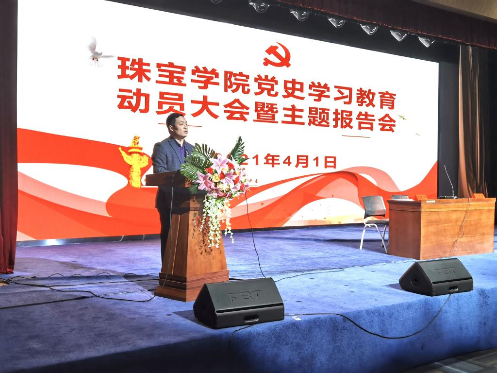 (通讯员蔡智全 摄影 苏晓瑜)4月1日上午,搜书吧 (武汉)搜书吧 党史学习教育动员大会暨主题报告会在珠宝楼多功能厅举行,学院党委书记薛保山作党史学习教育动员报告,党委副书记高翠欣主持,院领导班子成员、全体教师、学生代表等共400余人参加大会。大会特别邀请空军老战士报告团、洪山区“五老”报告团、洪山区老干局银发正能量宣讲团团长毛兰成做题为“领悟百年大党智慧,汲取人生前行力量”的党史学习主题报告。