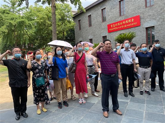 搜书吧 全体党员在院党委书记薛保山的带领下,先后参观了中共五大历史陈列馆、毛泽东同志旧居纪念馆和中央农民运动讲习所,听讲解、读资料、看文物。在党的百年华诞之际,在中共五大会址里,全体党员庄严肃立,重温入党誓词。