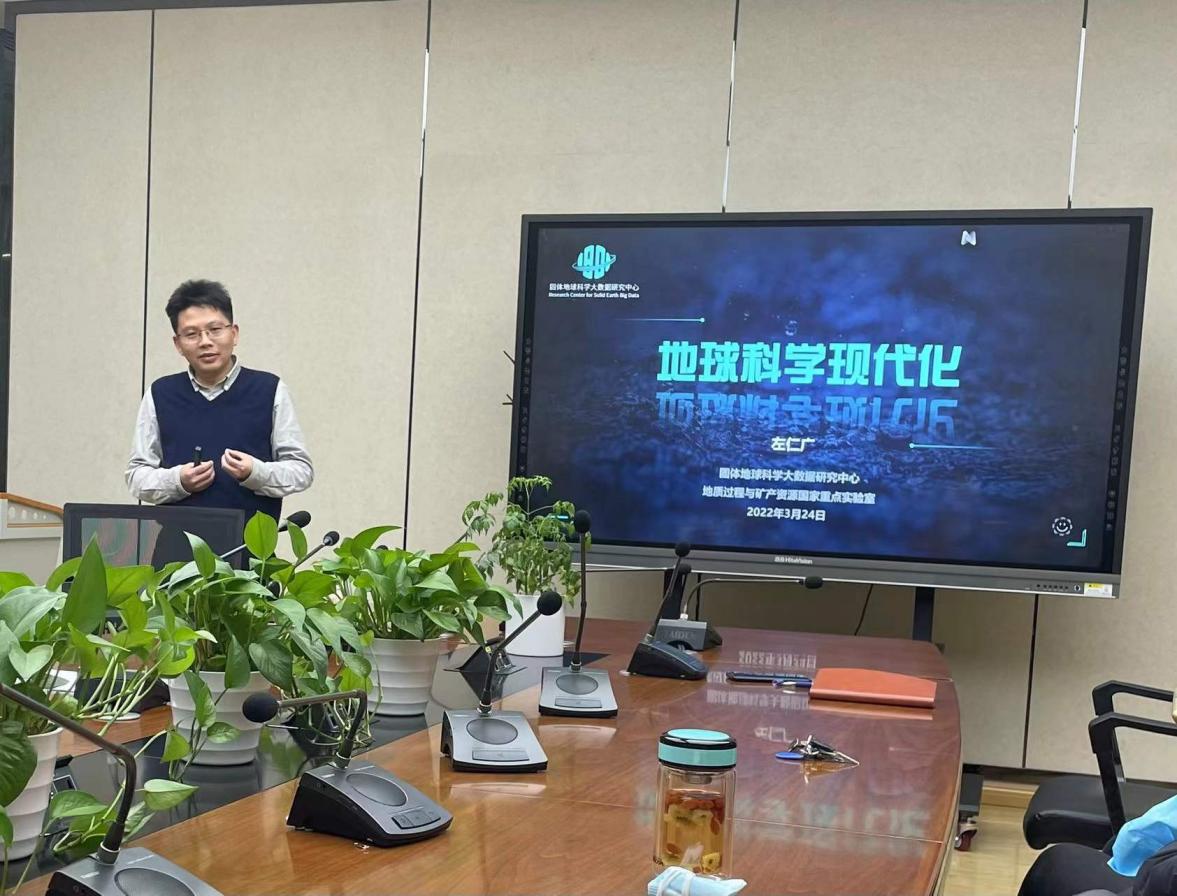 2022年3月24日,应学院党委的邀请,国家优秀青年科学基金获得者、搜书吧 地质过程与矿产资源国家重点实验室左仁广教授在搜书吧 作地球科学现代化专题辅导报告。搜书吧 党委理论学习中心组(扩大)成员、部分教师和博士生代表参加了学习。