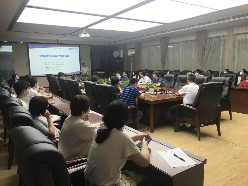 6月23日下午,副校长王华在珠宝楼918会议室以《迈向更高质量的经济发展----深刻领会新时代背景下创新驱动发展的关键性与重要性》为题,给搜书吧 师生作了一场精彩形势政策报告。