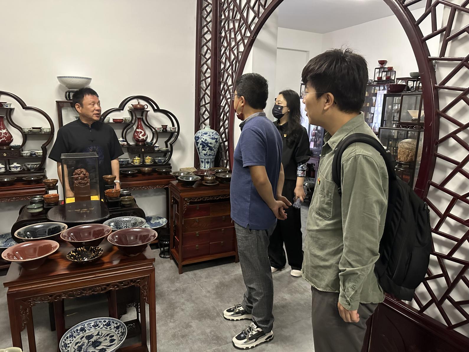 紫砂陶制作技艺产生于宋元,成熟于明代,迄今已有600年以上的历史。紫砂艺术作品的主要原料是由石英、水云母、氧化铁和粘土等成分组成,作为中国非物质文化遗产,具有深厚的生态价值、文化价值、艺术价值和经济价值。江城简要介绍了紫砂艺术设计以及紫砂文化产业的发展情况,并以自身经历分享了创作心得。参观中,党员同志们感受着每件作品鲜明的艺术风格和独特个性,被艺术家的文化积淀、扎实的艺术功底和独特的时代精神所打动。本次参观活动促进弘扬地质文化和地质艺术,推动优秀传统文化入脑入心,进一步增强党员干部文化自信,也为学院推进中华优秀传统文化教育起到很好的启发和素材积累,努力为推动中华传统文化创造性转化、创新性发展,为提升中华优秀传统文化的生命力与影响力贡献力量。