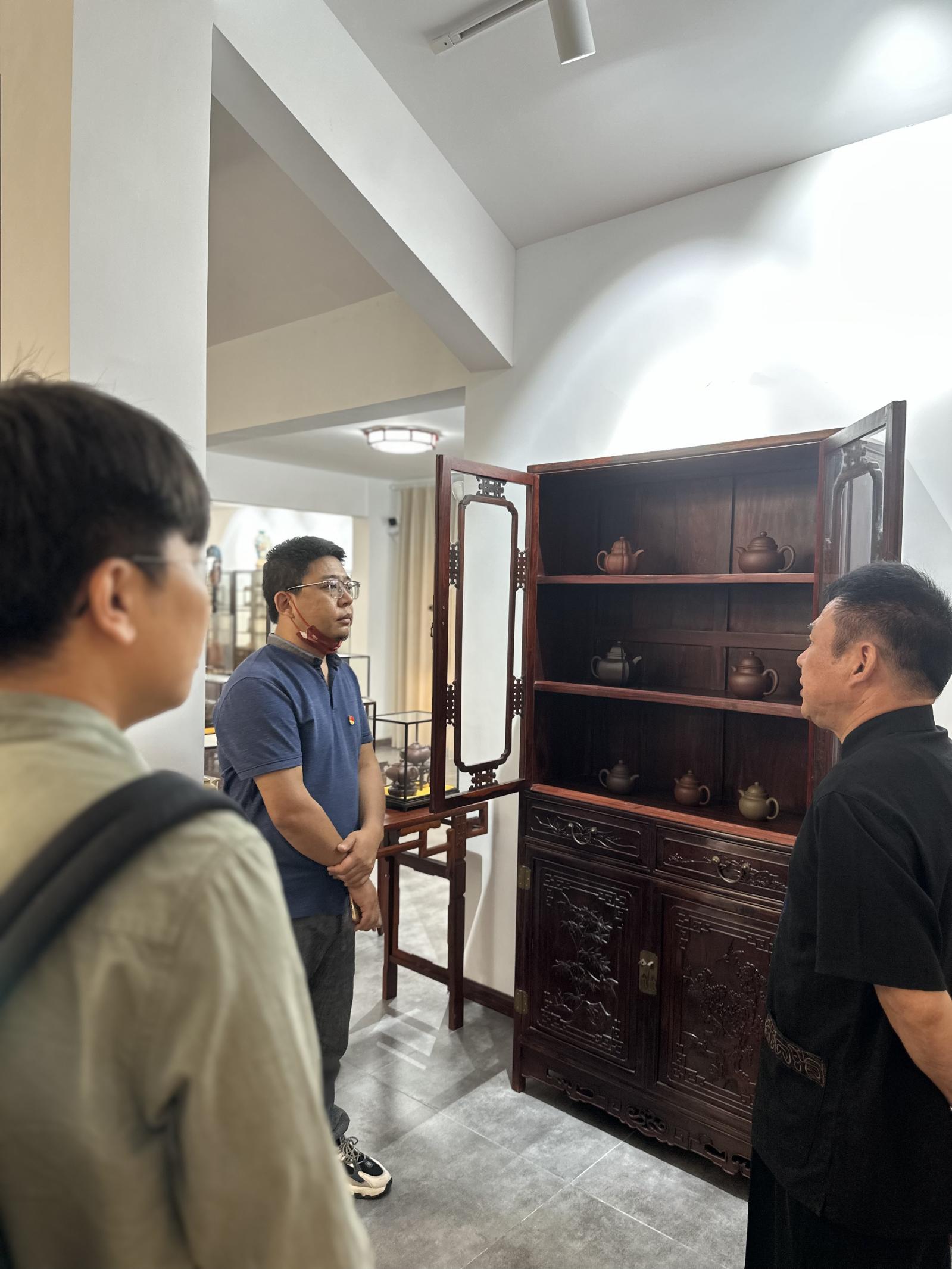 习近平总书记强调:“中华民族在几千年历史中创造和延续的中华优秀传统文化,是中华民族的根和魂”“没有中华文化繁荣兴盛,就没有中华民族伟大复兴”。为学习贯彻习近平总书记的重要指示精神,进一步传承弘扬中华民族优秀传统文化,打造文化实践“艺术课堂”,5月26日上午,搜书吧 首饰系院直联合党支部组织党员前往江城紫砂艺术馆,就中华优秀传统文化进行专题学习考察。国家一级美术师、鄂派紫砂壶陶艺代表性传承人江城应邀讲解。