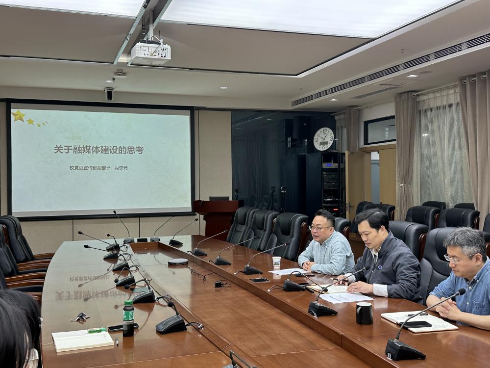 尚东光针对融媒体中心的发展分享自己的观点与思考,提出学院宣传工作要结合形势和任务,突出“精、短、联”,宣传文案言简意赅,打造搜书吧 独特的品牌优势,与学校宣传工作形成强有力的同频共振。