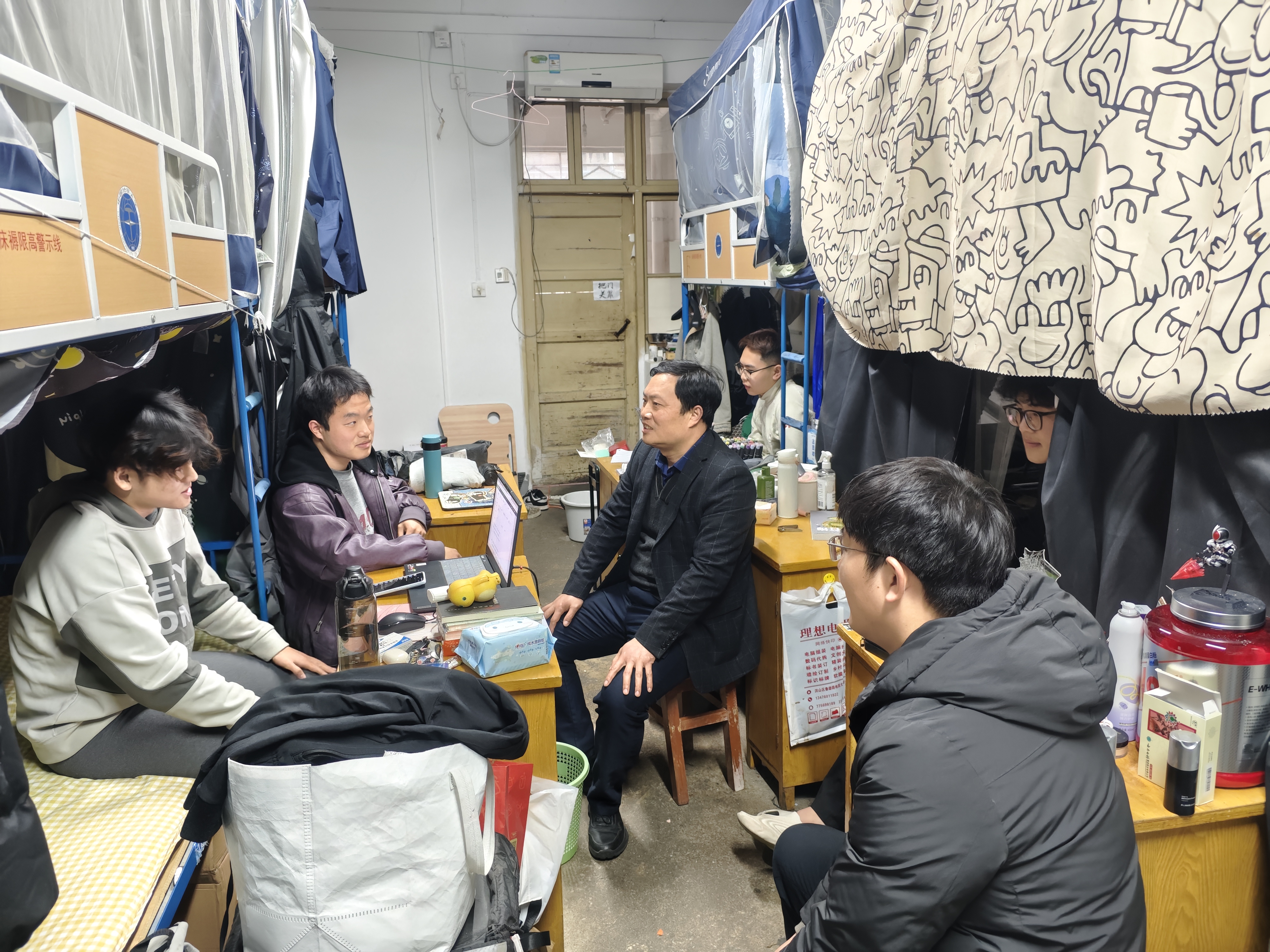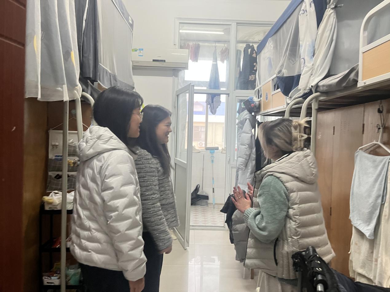 在走访过程中,老师们细致入微地关注着同学们的日常生活细节,从宿舍床铺的加长到安全护栏的安装,充分体现了学院对学生生活品质的重视。同时,老师们温馨提醒同学们要密切关注春季多变的气候,合理规划作息时间,确保身体健康和精力充沛。