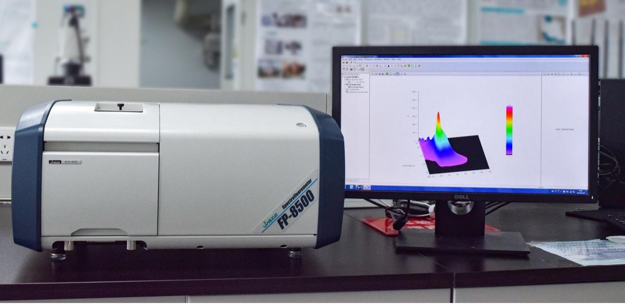 测试范围200-850nm,光谱带宽1、2.5、5、10、20nm,分辨率1.0nm,激发EX检测器光电二极管,发射EM检测器光电子倍增管。可测定样品二维、三维荧光光谱,荧光偏振度,磷光光谱,磷光寿命等。配备固体样品台、液体样品台及低温样品台,可适用于不同种类、不同要求样品的测试。可做最小1mm范围微区荧光测试。
