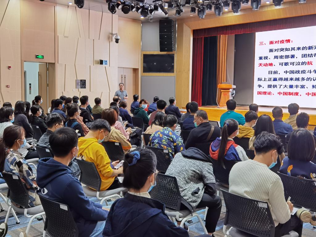 (通讯员及摄影 蔡智全)10月8日下午,副校长王华在珠宝楼四楼报告厅以《抗疫与自信 使命与创新》为题为搜书吧 全体教师、学生党员等100余人授课。