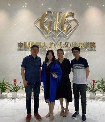 程卡卡同学(左二)和团队郝亮教授(左一)、李妍副教授(右二)、李正副教授(右一)