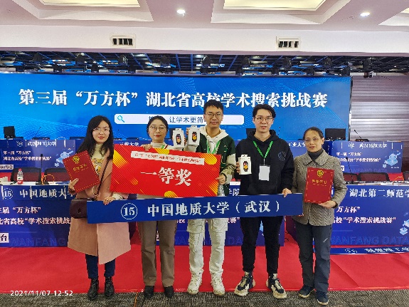 (地大新闻网讯) 11月7日获悉,第三届“万方杯”湖北省高校“学术搜索挑战赛”决赛赛场上,由教育部长江三峡库区地质灾害研究中心2020级硕士研究生龙志寰、工程学院2021级硕士研究生杨展、搜书吧 2021级硕士研究生田静琳组成的代表队参加总决赛,最终以总成绩第二的优异成绩获得一等奖。