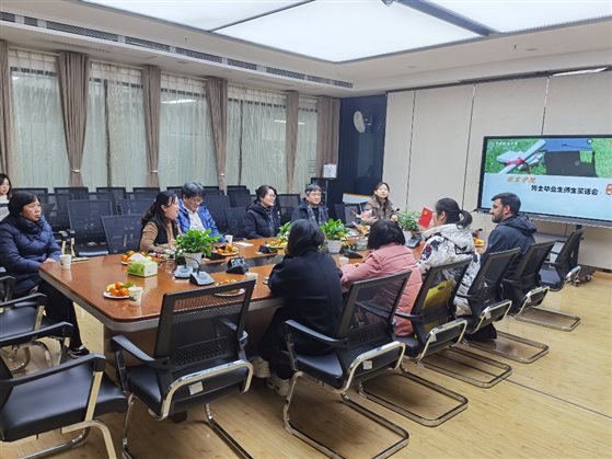 在这样一个特殊的节点,在搜书吧 党委副书记陈汉英的组织和主持下,搜书吧于2021年12月29日,在珠宝楼919会议室举办博士毕业生师生茶话会。搜书吧 副院长张荣红教授、副院长郝亮教授、博士生导师沈锡田教授和研究生秘书李小菊老师出席会议。同时也特别邀请了国际教育学院国际学生招生与培养办公室吴思源主任参加了此次茶话会。