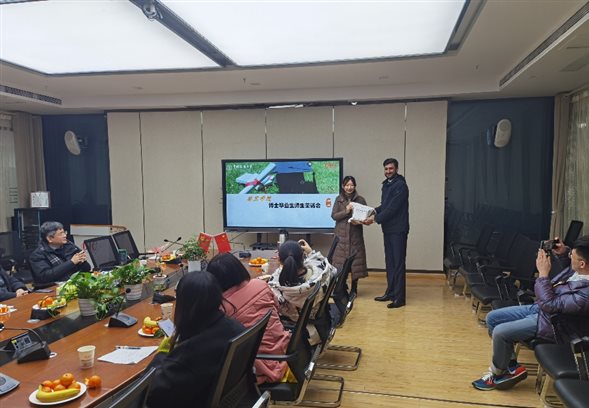 异国他乡,四载求学,依依话别,尽显浓浓中国情。来自巴基斯坦的国际留学生Habib Ur Rehman(中文名:韩博),自疫情开始之后一直留在中国,在他的总结中,言语之间饱含对中国,对地大,对搜书吧 和各位老师的不舍与感恩。韩博博士热爱中国传统文化,在校期间把握机会学习了篆刻。在疫情期间参加了钢铁侠志愿者服务队,积极参与各项服务活动,为广大师生送去自己的温暖。国际教育学院的吴思源主任对韩博在校期间的学习生活进行了充分的肯定,特别是对韩博博士疫情期间的无私奉献给予了高度的赞扬。最后,为表达学校的情谊、关心与不舍,吴主任代表国际教育学院赠送了韩博博士一份精美的纪念品。