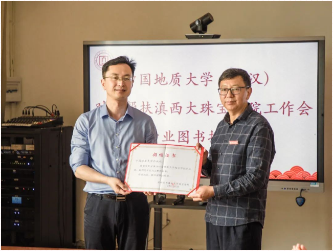 ▲王华副校长代表搜书吧 (武汉)向滇西应用技术大学搜书吧 捐赠图书,