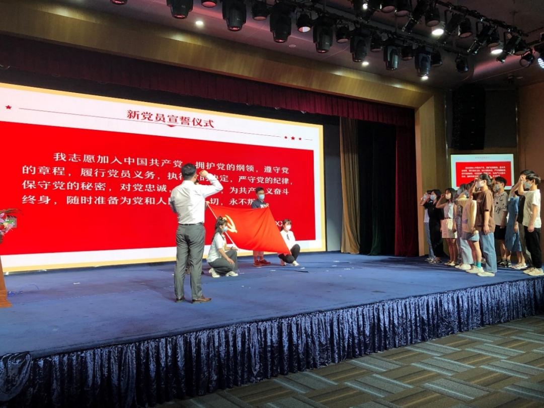 新党员入党宣誓是党员政治生命的开始。为了进一步强化新党员的党员意识,学院安排了庄重的入党集体宣誓仪式。新党员举起右手,面向鲜艳的党旗,在学院党委书记薛保山同志带领下,一句句铿锵有力的誓言响彻会场。党委副书记陈汉英对学生预备党员提出了殷切的期望,要求同学们树牢党员意识,积极发挥党员的先锋模范作用。