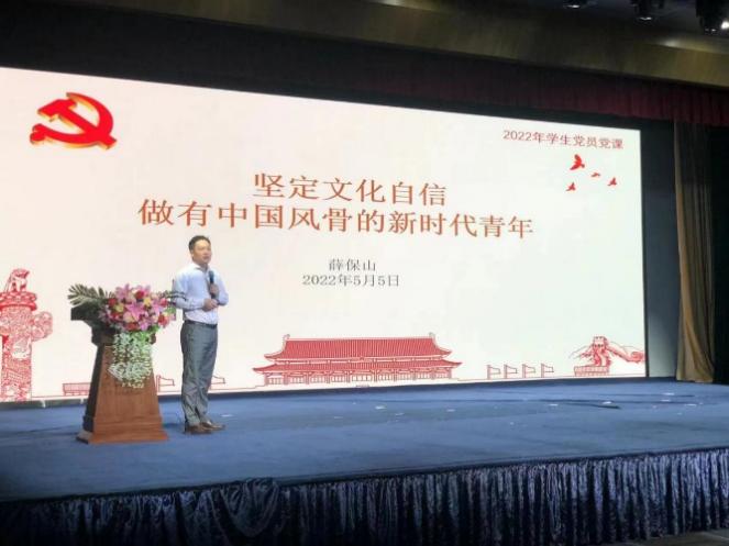 薛保山同志以《坚定文化自信 做有中国风骨的新时代青年》为题讲授党课。他从坚定文化自信、文艺社会价值、文艺作品评价、新时代新要求、践行文化自信五个方面向同学们娓娓道来,让大家对“文化自信”有了明确的认识与清晰的理解,并结合搜书吧 专业特色对文艺在培育和弘扬社会主义核心价值观方面的作用进行了深入浅出的讲解,要求大家深入学习贯彻习近平新时代中国特色社会主义思想,做社会主义核心价值观的坚定信仰者、积极传播者、模范践行者。