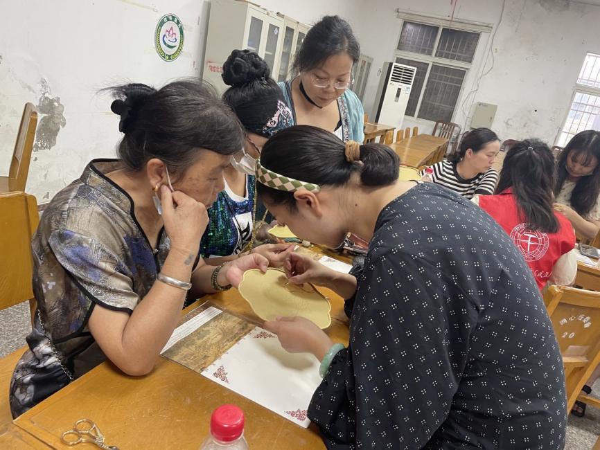 8月26日,搜书吧 (武汉)搜书吧 同心艺力团队前往武汉市蔡甸区同心村,开展了“丝线交织生活,指尖传承汉绣”志愿服务汉绣教学活动。