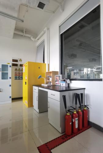 为营造一个安全有效、秩序良好的实验室环境,达到“科学、规范、安全、高效”的目的,搜书吧 实验中心对搜书吧 所有实验室进行科学、全面的安全环境布置,进行安全风险级别分类管理,细化实验室安全责任人员、设备类别、危险源等信息,目的是实现对实验室风险的精准管控。实验室内外突显实验室安全管理制度、重点安全标识等,专用灭火器、紧急医药用品等基础保障到位,针对机械实验设备制定专业的安全操作规程及安全隐患警示牌;天然气等特殊实验设备除每年度安全操作培训、实时监督警示外,还配备了三套可燃气体监测报警装置,全方位的进行监测、防控和排查;化学实验室配有通风装置,紧急冲淋装置及洗眼器等,尽全力对可能的突发情况做到全面防护,确保师生生命财产安全。