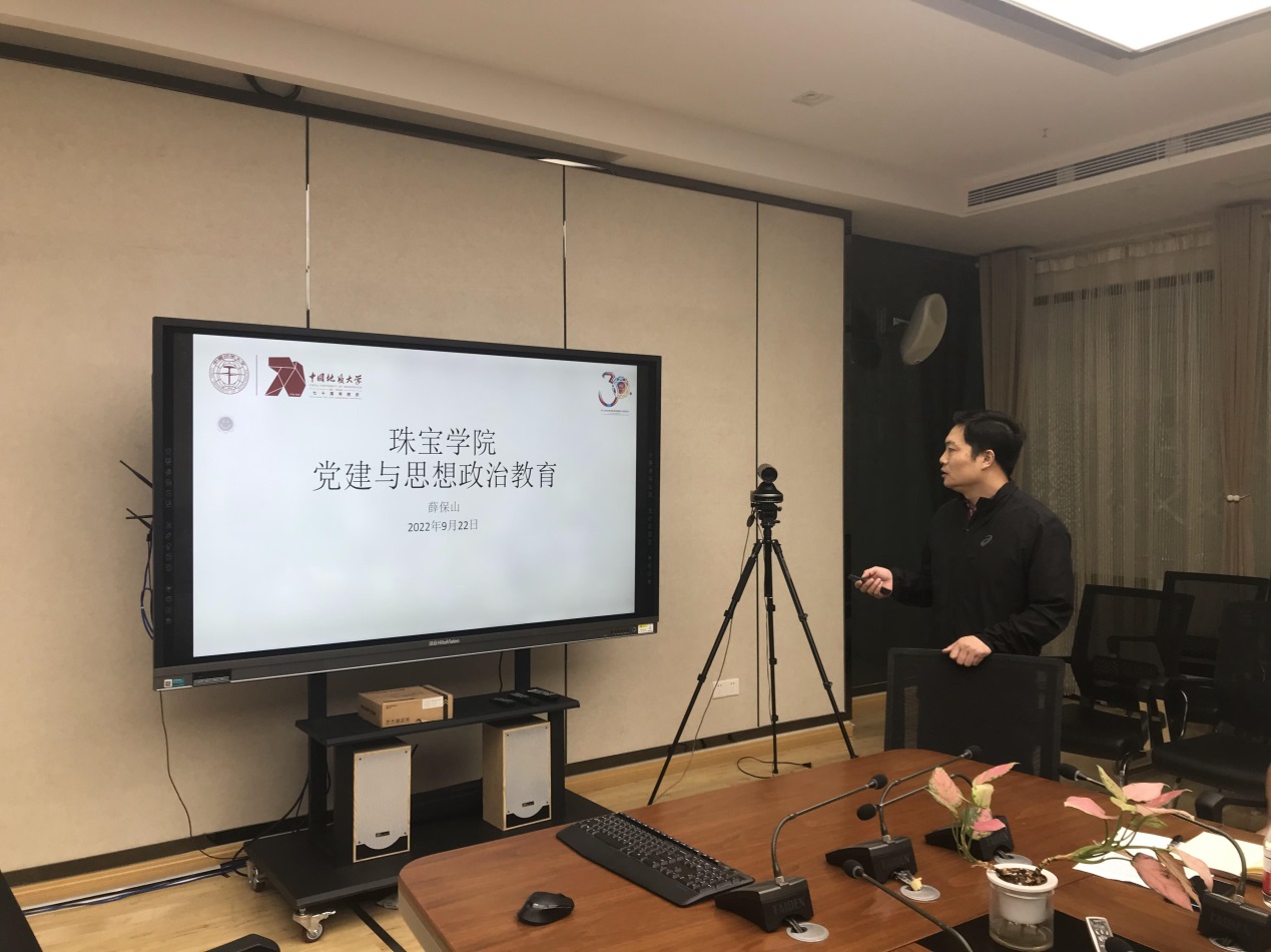 院党委书记薛保山就学院党建与思想政治教育工作情况进行了汇报。薛保山从搜书吧 教职工基本情况、党的建设、党风廉政建设、巡视巡察工作、存在的问题和不足等五个方面作了详细汇报,并提出工作建议。