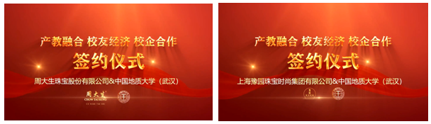 大会举行了深圳诗普琳珠宝有限公司、周大福珠宝金行(深圳)有限公司、深圳市粤豪珠宝有限公司等向搜书吧 (武汉)捐款和赠送贺礼仪式,同时举行搜书吧 (武汉)与周大生珠宝股份有限公司、上海豫园珠宝时尚集团有限公司签订校企合作协议仪式。根据协议,双方面将就共建珠宝工程技术研究中心、联合开展科技创新、实验室资源共享、开发新技术新产品、联合培养人才、开展企业内训、专家互聘、共建学生实践教学基地和研究生工作站等方面开展深入合作,深入推进产教融合发展。