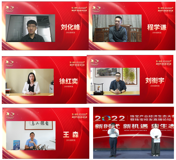 七秩荣光,宝教卅年,凝聚了所有地大人、珠宝人的辛劳与智慧;归来少年,逐梦未来,续写每位地大人、珠宝人的奋斗与创造。在欣赏完《宝教卅年 归来少年》回顾片后,1992级校友、国家首饰质量检验检测中心深圳实验室副主任刘化锋,1995级校友、武汉新金珠宝首饰有限公司总经理程学谦,2000级校友、HRD Antwerp中国区总监徐红奕,2006级校友、上海建桥学院搜书吧 院长刘衔宇,2010级校友、深圳凡盛实业有限公司总经理王森等校友代表表达对母校和恩师的感激之情和对学弟学妹的谆谆告诫,搜书吧 在校生代表2020级本科生杨俊峰和2021级本科生马如璇同学线下发言,表示要向优秀校友学习,励志成才,做未来珠宝行业的栋梁。