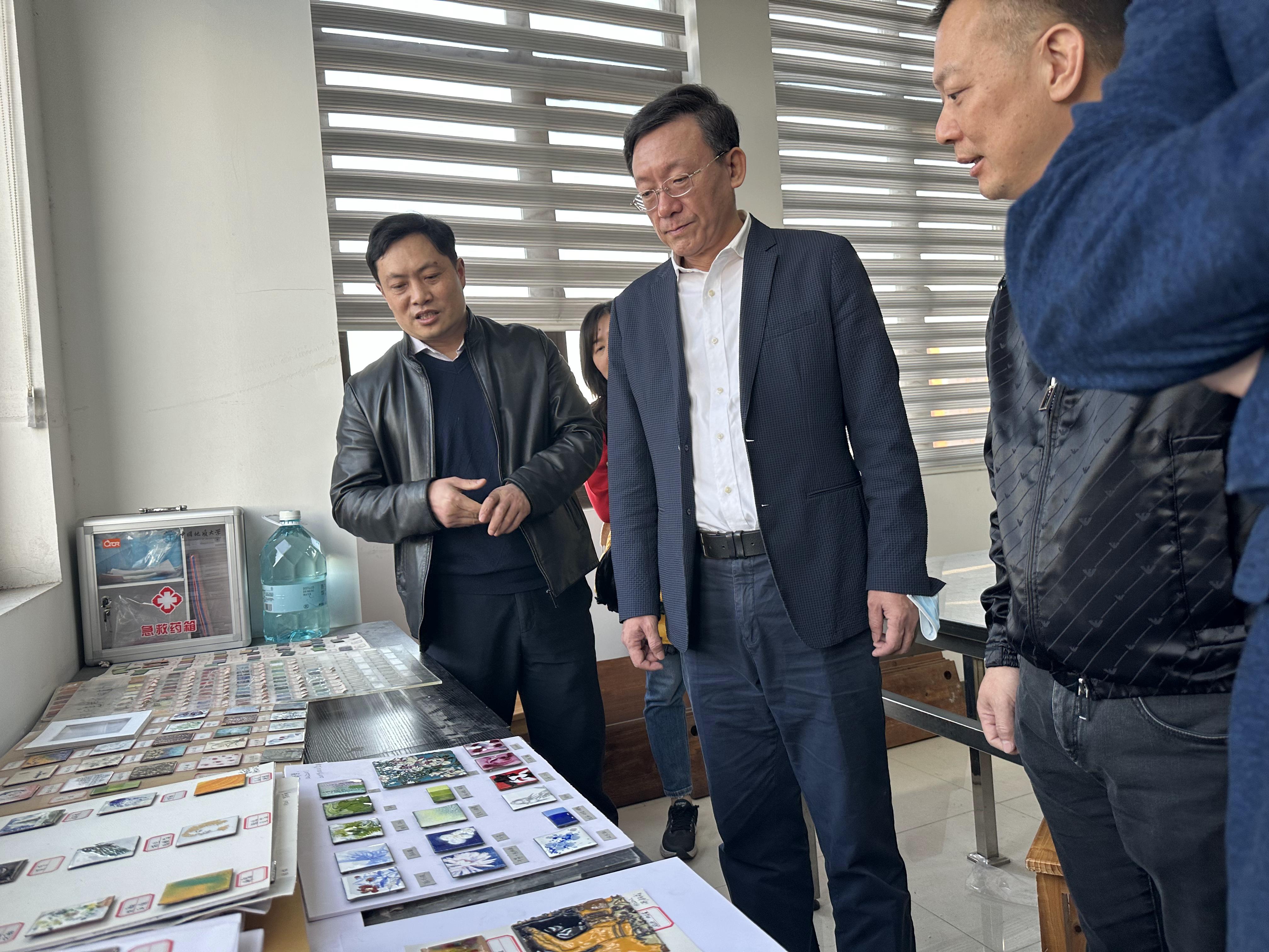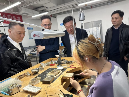 柳光敏一行11人在搜书吧 党委书记薛保山、副院长郝亮等陪同下,参观了搜书吧 先进制造研究所、大型仪器室、宝石加工实验室、世界技能大赛珠宝加工项目训练基地、艺术馆等。
