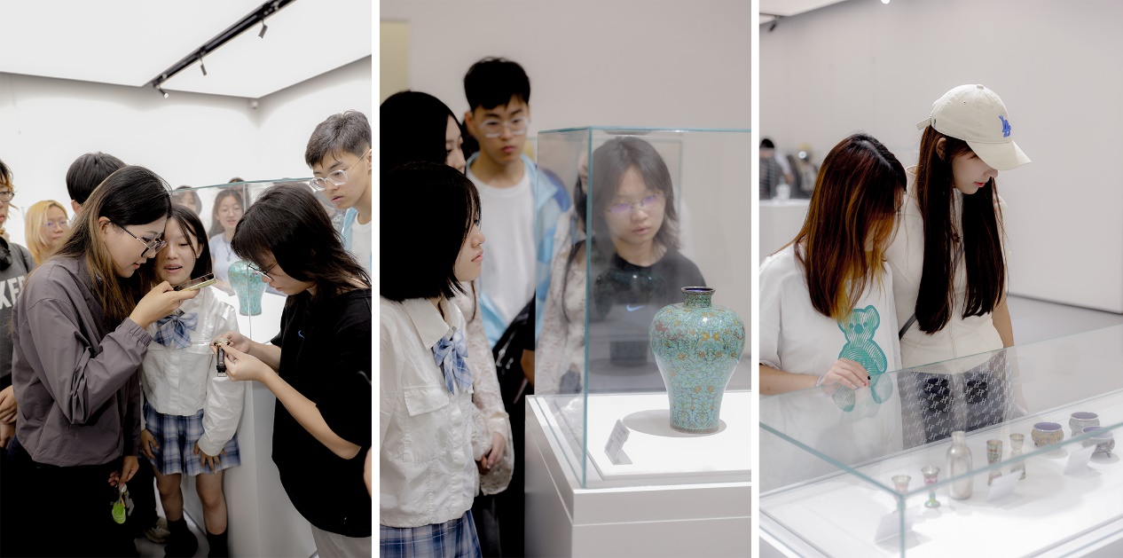 开幕式后,熊大师带领师生观看珐琅展品,并分享了自己的经验,同时解答了同学们一些对珐琅工艺的疑惑。前来参加开幕式的同学们纷纷点赞,他们坦言,熊大师的珐琅作品精彩分呈,大师的讲解让人收获满满、受益匪浅。