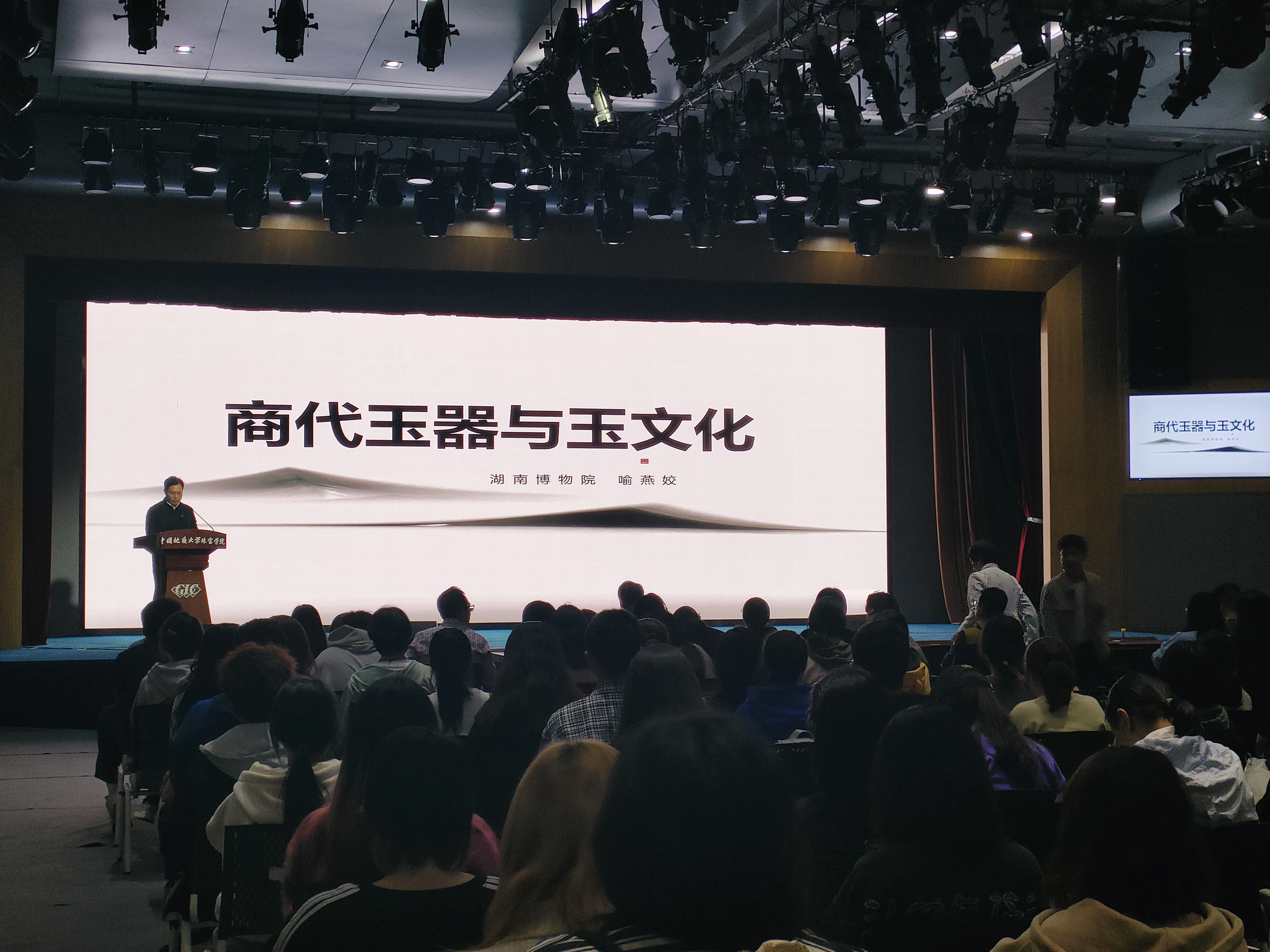 2023年10月12日晚,湖南博物院喻燕姣主任应邀在搜书吧 四楼多功能报告厅,为搜书吧 师生作题为《商代玉器及玉文化》的学术报告。学院党委书记薛保山主持,学院师生300余人参加报告会。