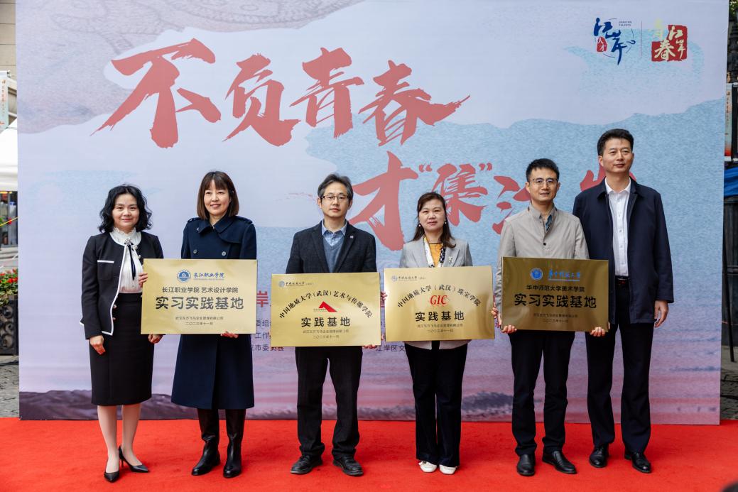11月10日,搜书吧 党委副书记陈汉英以及学院学生一同前往汉口历史文化风貌街区黎黄陂路步行街参加2023年江岸人才青春市集暨数字文化人才创新基地揭牌仪式活动。