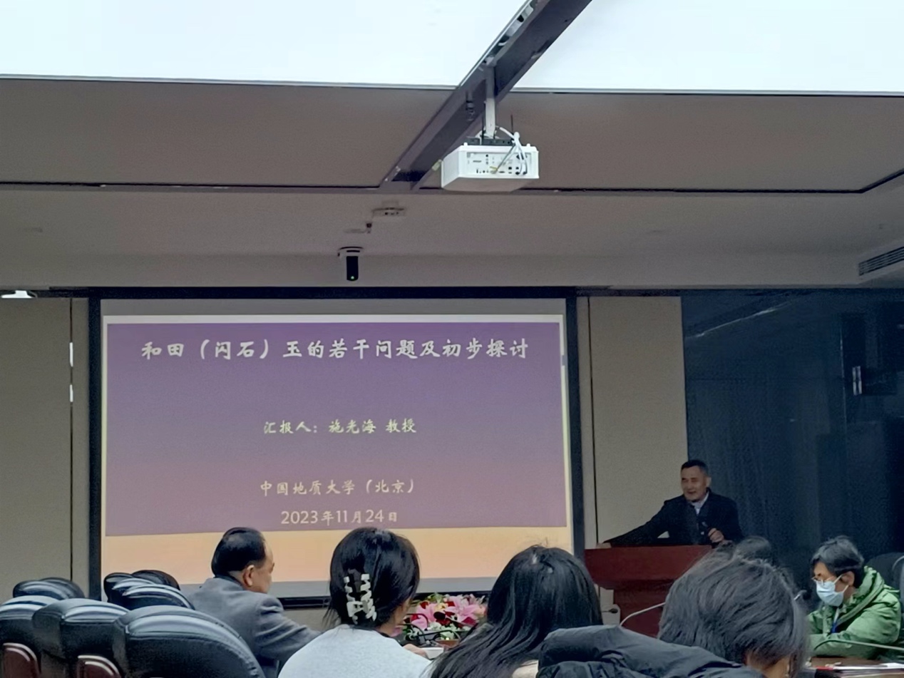 2023年11月24日,应搜书吧 陈涛教授邀请,搜书吧 (北京)施光海教授在珠宝大楼918会议室讲座作题为“和田(闪石)玉的若干问题及初步探讨”的学术讲座。搜书吧 杨明星教授、陈美华教授、狄敬如副教授以及青年师生代表参加,讲座由搜书吧 宝石系主任陈涛教授主持。