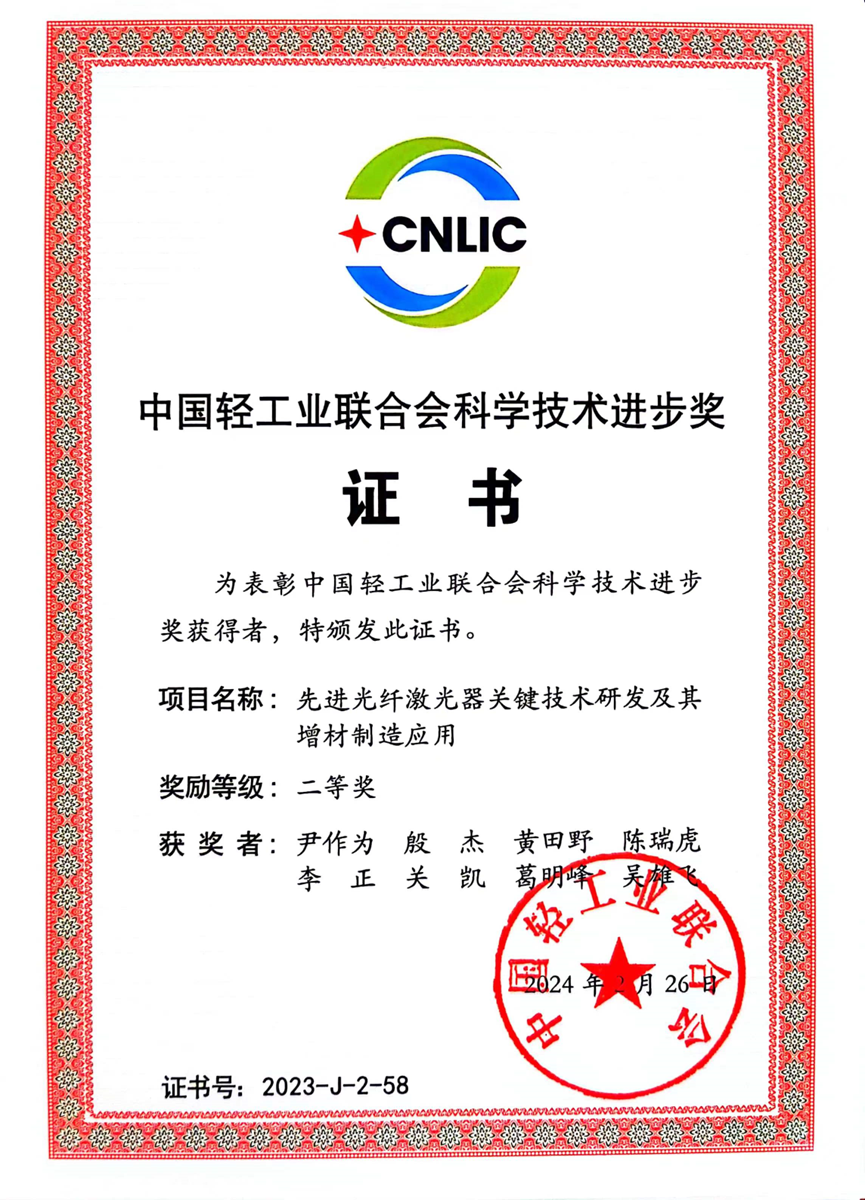 12月28日,中国轻工业联合会科学技术奖励委员会公布的2023年度中国轻工业联合会科学技术奖名单中,搜书吧尹作为教授主持申报的“先进光纤激光器关键技术研发及其增材制造应用”项目获得2023年中国轻工业联合会科技进步二等奖。该项目由搜书吧 搜书吧 联合机电学院,与安徽工业经济职业技术学院、鑫精合激光科技发展(北京)有限公司、武汉锐科光纤激光技术股份有限公司、武汉华日精密激光股份有限公司等单位共同完成,项目完成人:尹作为、殷杰、黄田野、陈瑞虎、李正、关凯、葛明峰、吴雄飞。