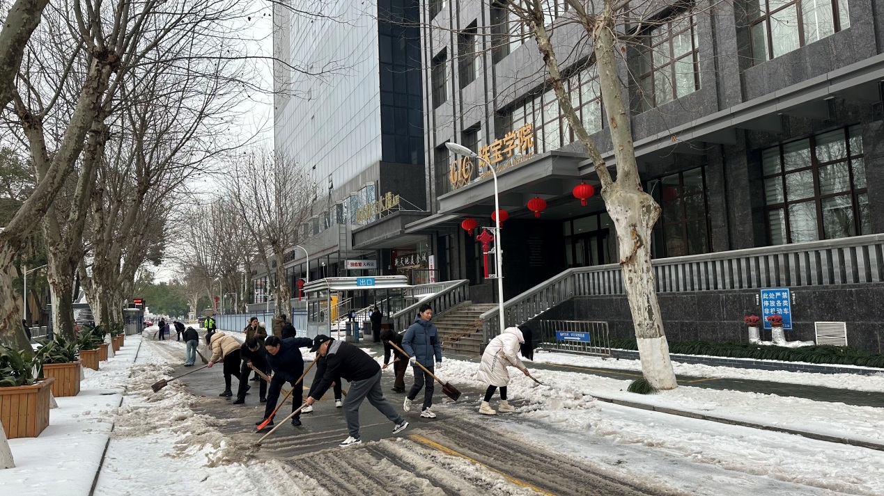 2月23日9点,学院再次召集在院的教职工对学院大楼门前主干道的积雪进行了清除。16名教职工经过一个半小时的奋战,完成了学院周边进出校园主干道及人行道积雪的工作。