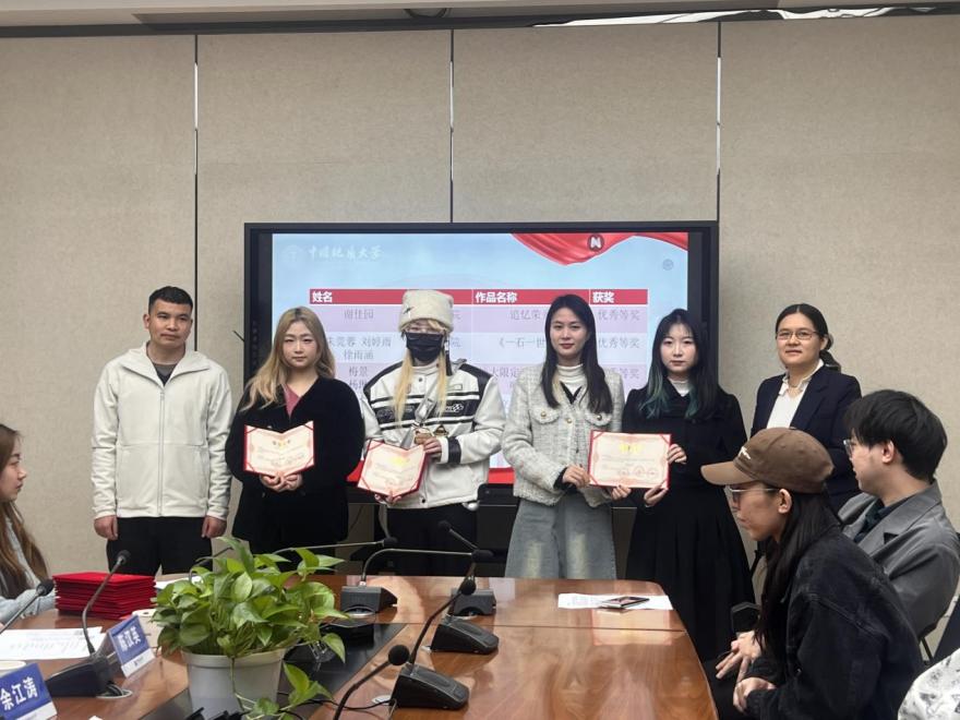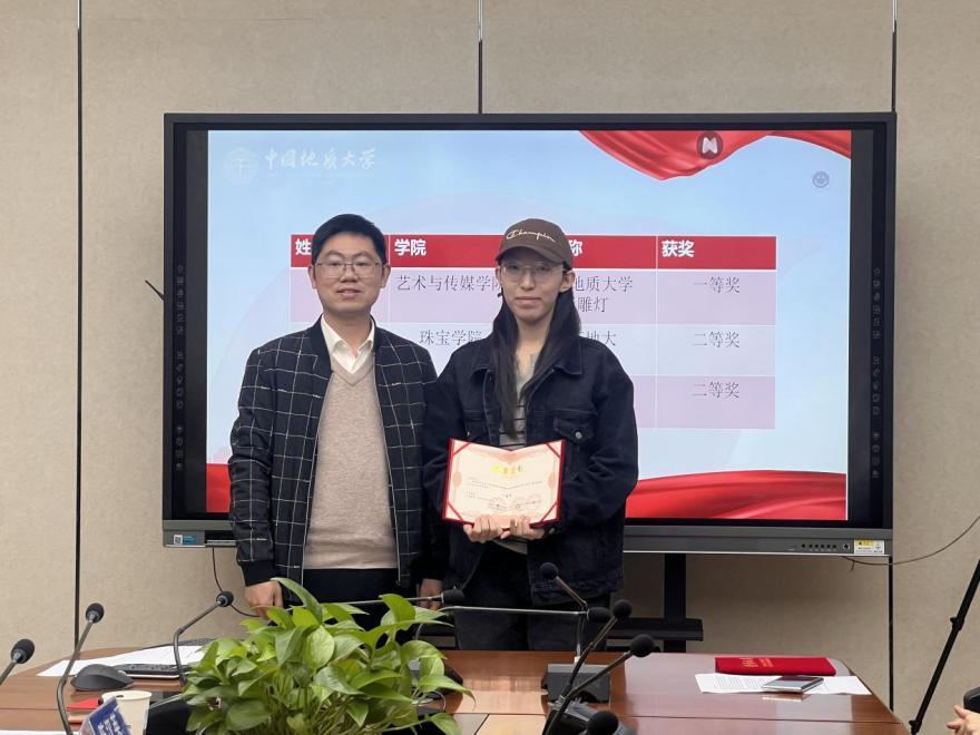 张琰副总经理宣读表彰决定。本次比赛经过作品征集,层层筛选,共评出一等奖1名,二等奖2名,三等奖4名,优秀奖4名。张琰鼓励同学们积极参加文创设计大赛,希望有更多学生的文创作品能够展现地大文化风采。