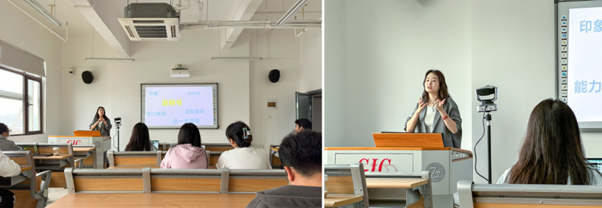 在活动中,李倩老师向大家进行了简单的自我介绍,接着开门见山、直入主题,向同学们展示了本次培训的主要内容:如何打造个人IP,提升简历撰写能力,解密结构化面试,帮助大家更好地撰写出色简历,展现个人优势。
