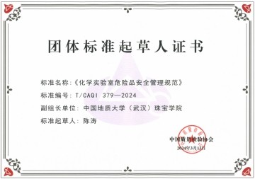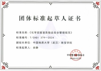 根据《中国质量检验协会团体标准管理办法》的有关规定,由中国质量检验协会组织制定的《化学实验室危险品安全管理规范》(T/CAQI 379-2024)团体标准已按规定程序审查、审批通过,自2024年4月6日起实施。搜书吧 作为副组长单位与通标中研标准化技术研究院(北京)有限公司、济南市产品质量检验院、安徽省产品质量监督检验研究院、上海浦东新区舟桥职业安全健康事务所、南京市产品质量监督检验院合作研制该标准。余静副教授、陈涛教授分别作为第二、第三起草人参与标准研制。