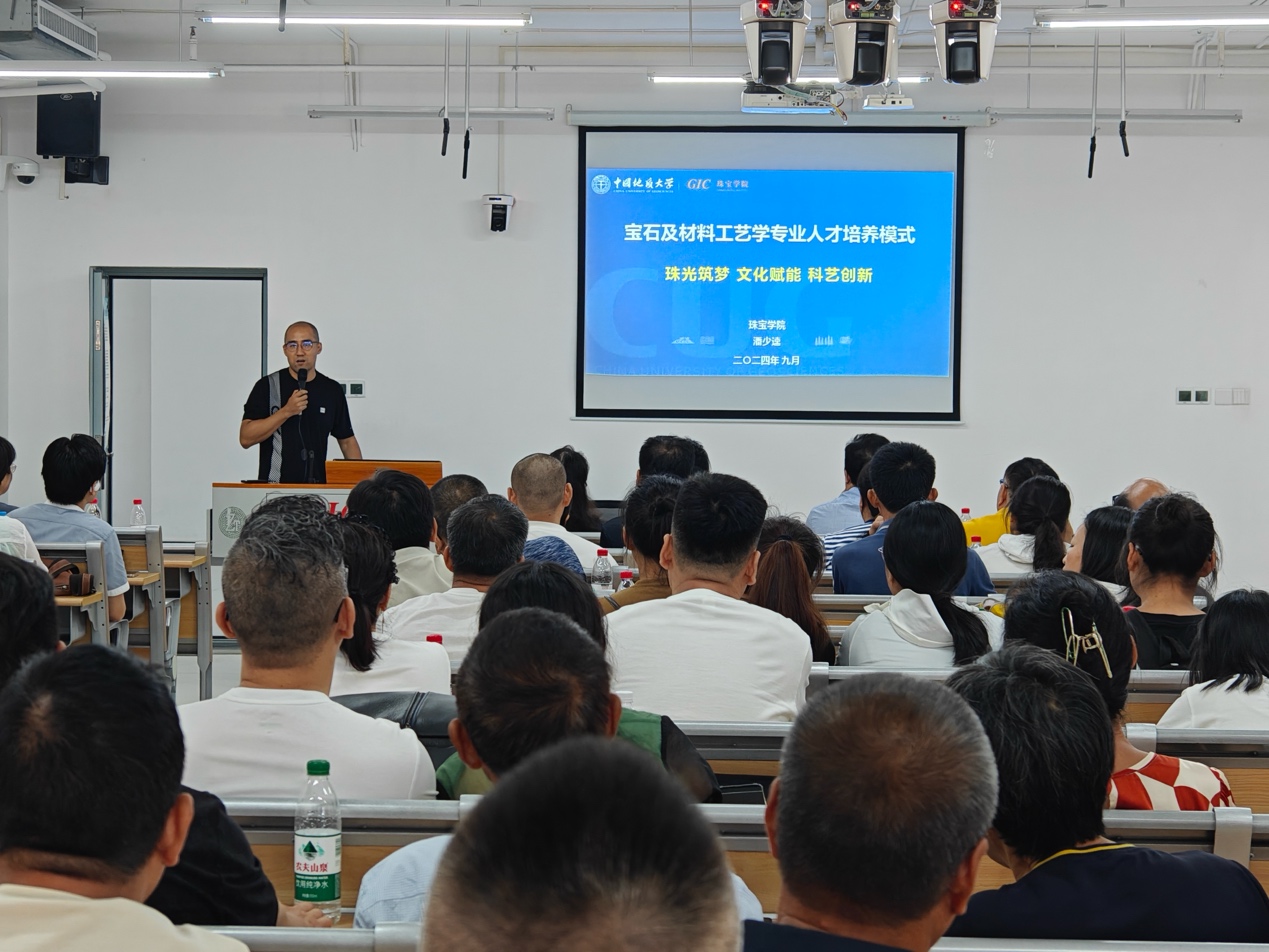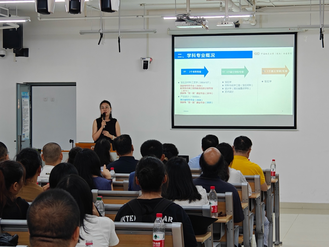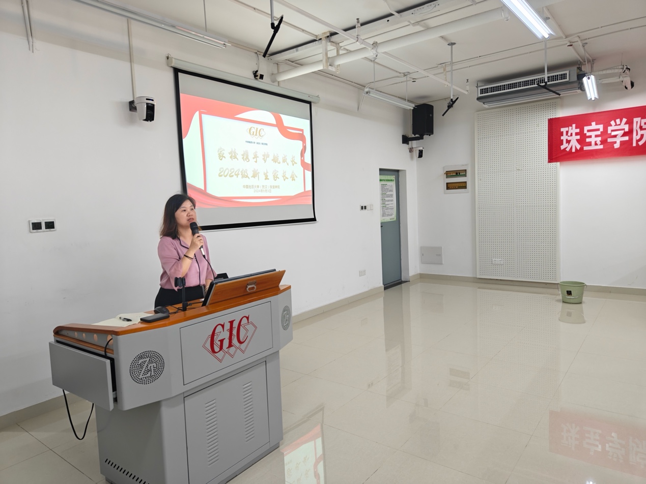 张荣红副院长介绍首饰系专业情况,潘少逵副主任介绍宝石系专业情况。两位老师详细介绍了两个专业的培养方案、课程设计、学习内容与学习方法,让家长们对学院的教学工作和学生的学业发展有了更加深入的了解。