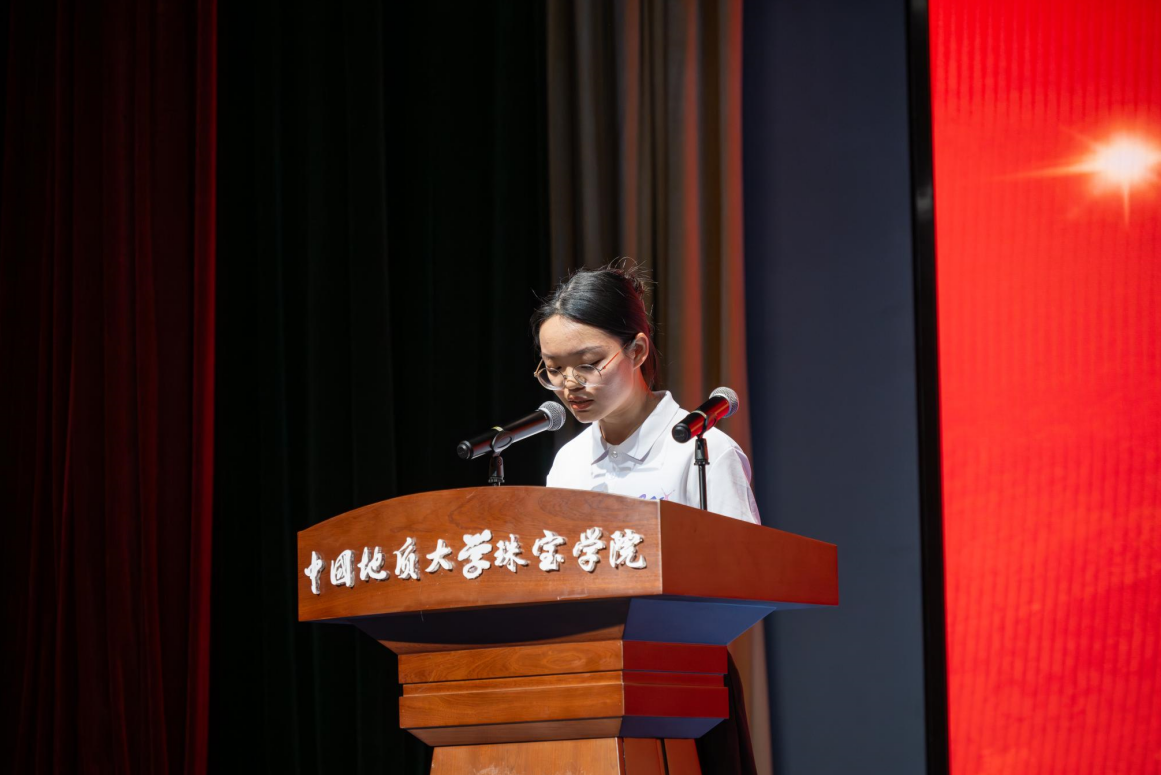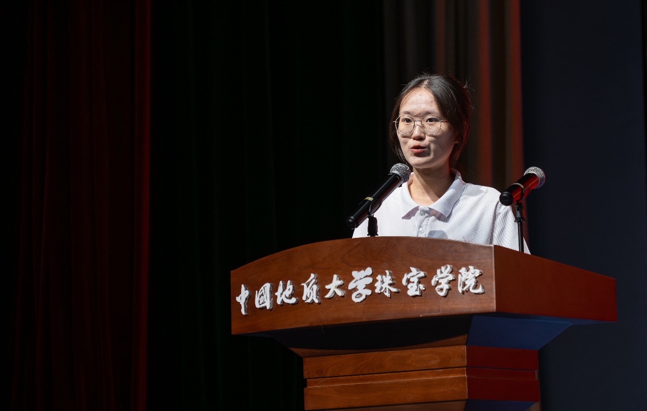 本科生新生代表方婉晶讲述了自己与地大结缘的故事,分享了对地大和搜书吧 从陌生到渐渐熟悉的心路历程,也不断勉励自己和同学们,在新的征程上奋勇拼搏。