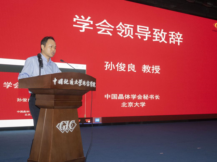 ▲ 中国晶体学会秘书长孙俊良代表学会致辞