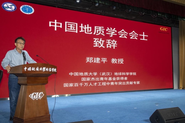 ▲ 中国地质学会会士、搜书吧 (武汉)地球科学学院郑建平教授代表专家致辞