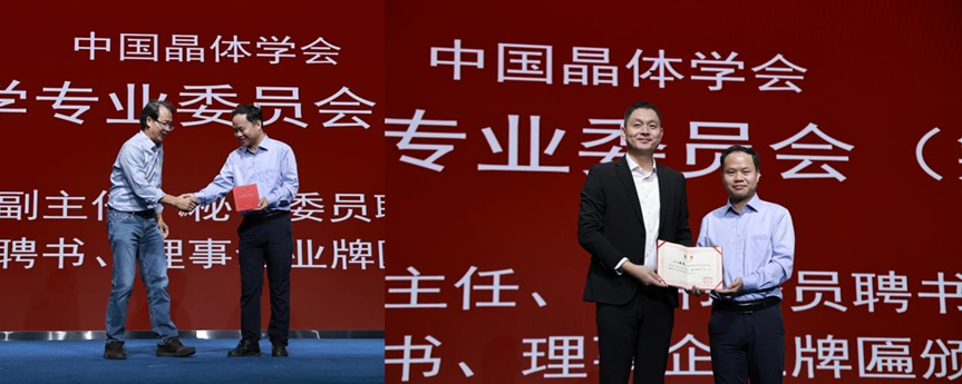 ▲ 中国晶体学会企业理事单位领取牌匾