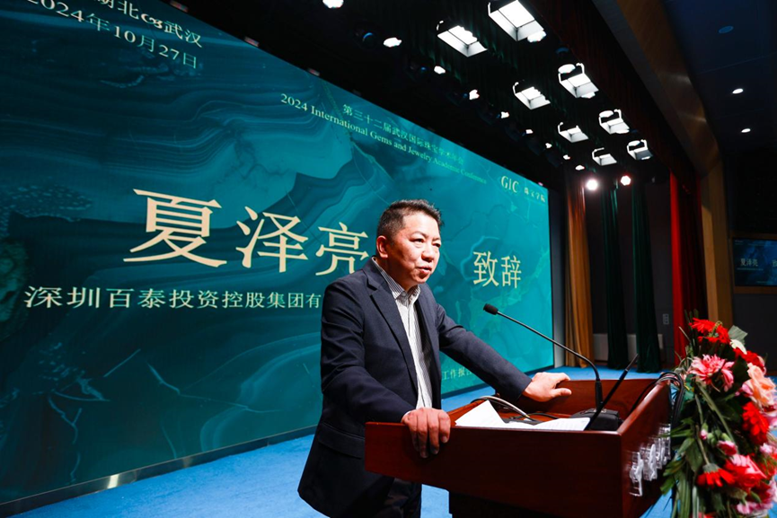 深圳百泰投资控股集团有限公司副总裁夏泽亮致辞。他表示,珠宝行业的可持续发展和创新变革正面临着前所未有的机遇与挑战,作为珠宝行业的重要一员,百泰集团始终秉承“传承经典,创新未来”的理念,致力于推动珠宝设计与工艺的不断进步,并积极响应国家关于品牌建设与高质量发展的号召。