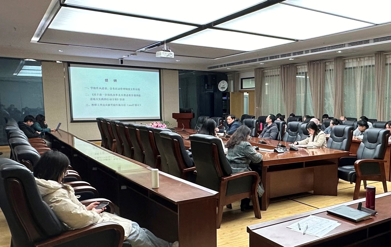 12月19日下午,在搜书吧 918会议室,搜书吧 组织开展学习贯彻学校作风建设、深化改革等文件精神。学院全体教职员工参加了会议。院长尹作为主持会议。