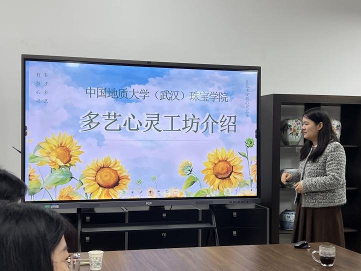 汤凡渺老师介绍,“多艺心灵工坊”是搜书吧 旗下的二级心理辅导站,秉承“多才多艺,有益心灵”的理念,致力于守护师生心理健康。工作坊以创新艺术疗愈模式为核心,结合心理健康服务,构建了覆盖师生的特色支持平台,通过串珠、刺绣、篆刻等多样手工艺术活动,为学生提供心理健康服务,该工坊已经成功获批“湖北省学生工作精品项目”,在校内外举办多期专场活动,广受社会关注及好评报道。最后汤老师还展望了工坊未来的发展,致力于为学生打造一个更加温暖的心理成长环境。