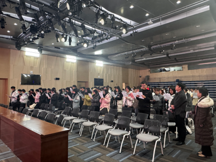 大一的同学们全体起立宣读《诚信考试承诺书》,承诺共同构建考试的诚信环境,保证杜绝违纪作弊等不良行为,树立公平、公正、诚实守信的良好考试纪律。