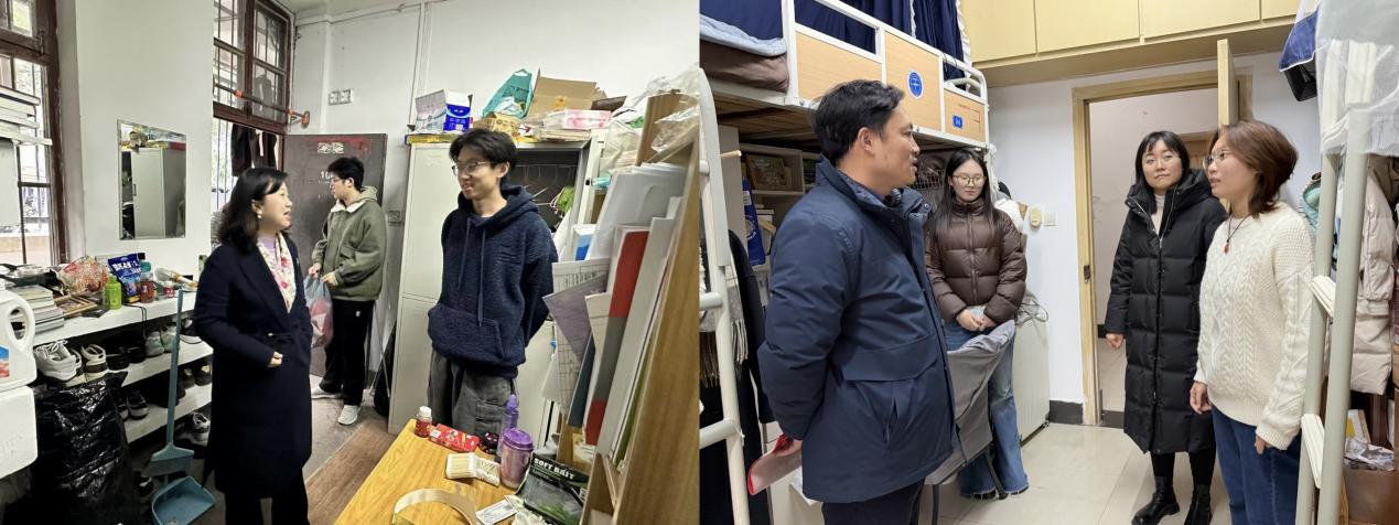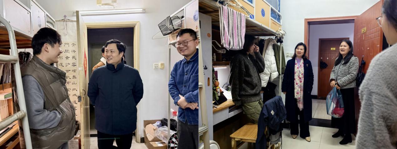 此次走访活动共走访了本研十二个宿舍,老师们深入了解了同学们的就业进展、学习生活和科研方向等方面的情况,既温暖了同学们的心,也促进了学院与学生之间的沟通与互动。在走访过程中,老师们与同学们面对面交流,细致了解他们的学习、生活和思想状态,特别关注学业与生活中遇到的困惑与挑战。“课业压力如何”“研究方向确定了吗?”“课程学习与生活上是否遇到问题?”这些关切让同学们真切感受到了学院在寒冬时节送来的温暖与关怀