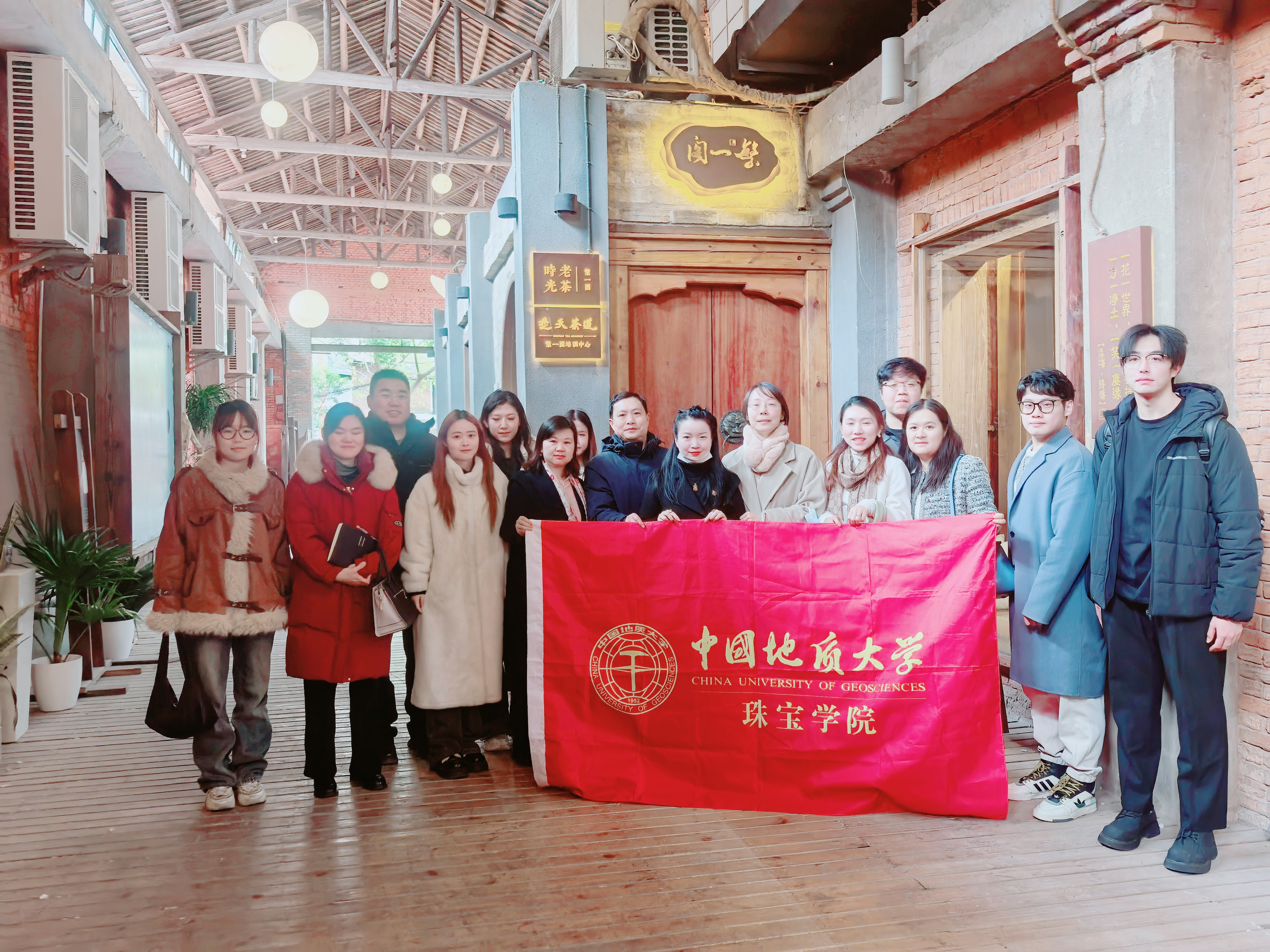 晴川阁下,武汉繁一美学公司总经理助理曾丽带领一行人员走访参观了繁一阁的美好生活体验馆和美丽首饰陈列馆。在体验馆内,木材、雕像、茶道、青金石等在各种艺术体验空间展开,考察师生们了解到“欣赏美物、聆听美音、深嗅花香、领略文化”的一站式营销理念,充分感受了“珠宝玉石+文化体验赋能”的营销样板。