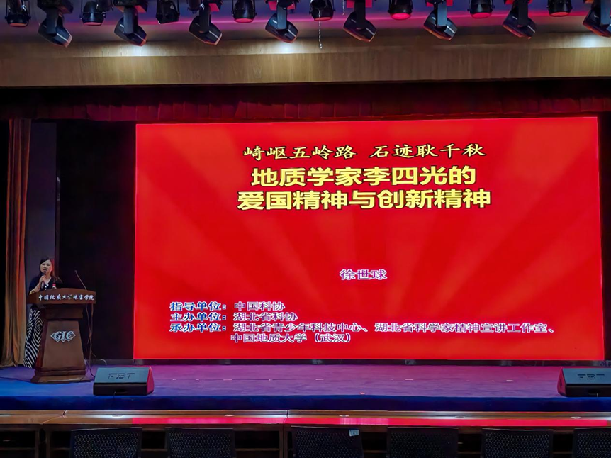 为弘扬科学家精神,提升高校师生爱国情怀和科学素养,搜书吧 (武汉)邀请徐世球教授于2025年5月5日来到搜书吧 四楼报告厅开展科学家精神宣讲进校园活动。本次活动由中国科协指导,湖北省科协主办,湖北省青少年科技中心、湖北省科学家精神宣讲工作室、搜书吧 (武汉)承办。徐教授以《崎岖五岭路,石迹耿千秋——地质学家李四光的爱国精神与创新精神》为题给同学们带来一场精彩的宣讲。搜书吧 (武汉)百余师生参加活动,讲座由搜书吧 党委副书记陈汉英主持。