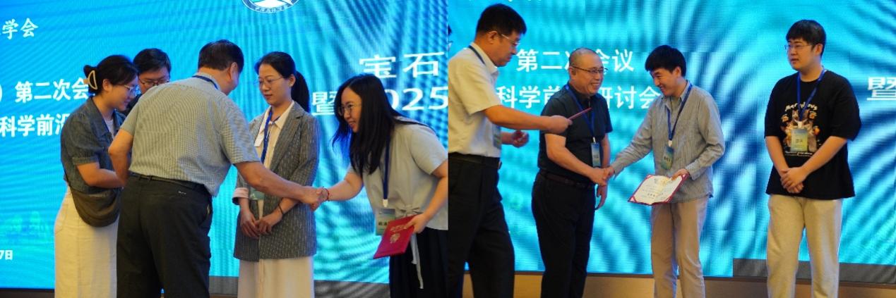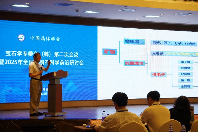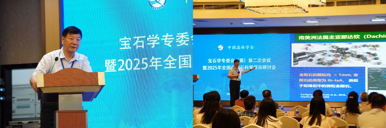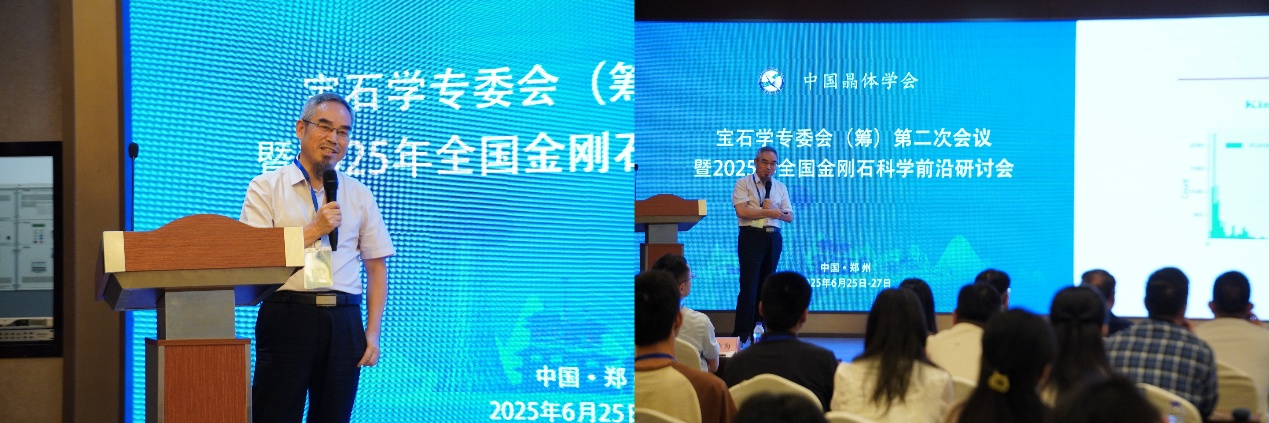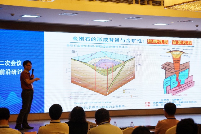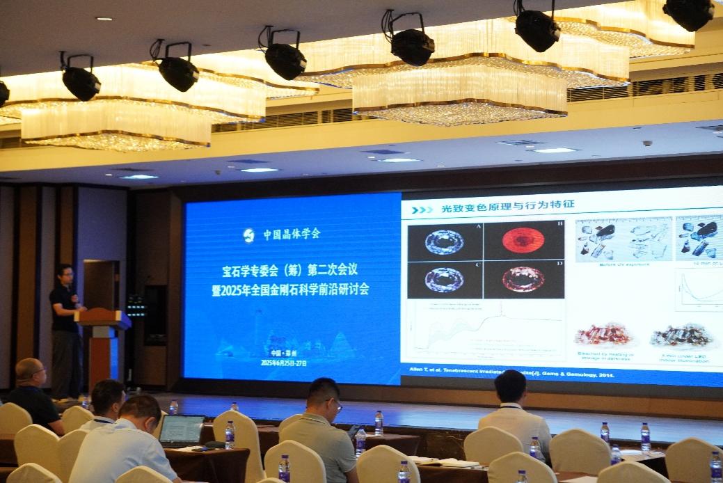 会议报告围绕 3 个专题展开。专题报告 1 聚焦天然金刚石成因及矿产资源开发与利用,付海涛、张舟等 15 位报告人分享了关于金刚石矿找矿方法、地幔金刚石成因特征等最新研究成果,为天然金刚石资源的勘探与开发提供了新思路;专题报告 2 围绕金刚石合成技术及应用,姚明光、张元等 13 位专家深入探讨了金刚石的最新合成方法和工业应用前景,展示了金刚石在量子计算、光电器件等领域的巨大潜力;专题报告3则荟萃金刚石的宝石学研究与发展,亓利剑、宋中华等8位来自科研单位的专家与青年学者进行了邀请报告与口头报告,聚焦金刚石鉴定技术以及国际金刚石市场现状,分享了前沿的鉴定技术方法和当前的市场发展动态。