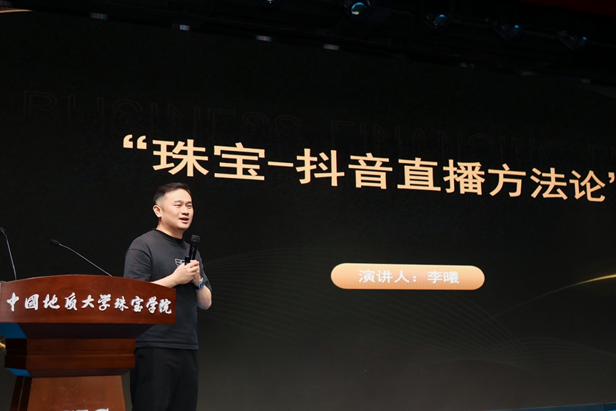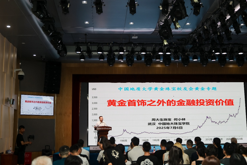 校友们在各行各业辛勤耕耘、艰苦奋斗,与学校事业发展同频共振,来自不同领域的四位校友代表开展主题分享交流。1981级校友何小林,现任周大生珠宝股份有限公司副总裁兼董事会秘书,作《黄金首饰之外的金融投资价值》专题报告。2001级校友封书阳,现任IBELOVE爱一珠宝总裁,作《“秀才遇上兵”——搜书吧 派的创业突围之路》主旨分享。2001级校友李曦,现任中国通信工业协会直播电商分会珠宝专业委员会副会长,作《珠宝—抖音直播方法论》主旨报告。2003级校友余悠,百度前⾼级研发⼯程师,将AI技术系统应⽤于珠宝设计领域的重要开拓者,作《AIGC重塑珠宝设计范式》的专题分享。四位校友的精彩分享,展现了“珠宝人”的匠心坚守与创新突破。