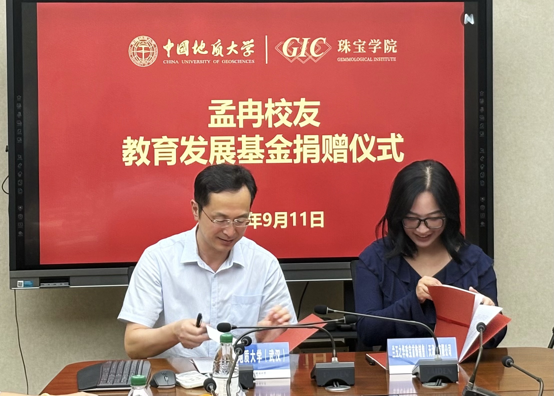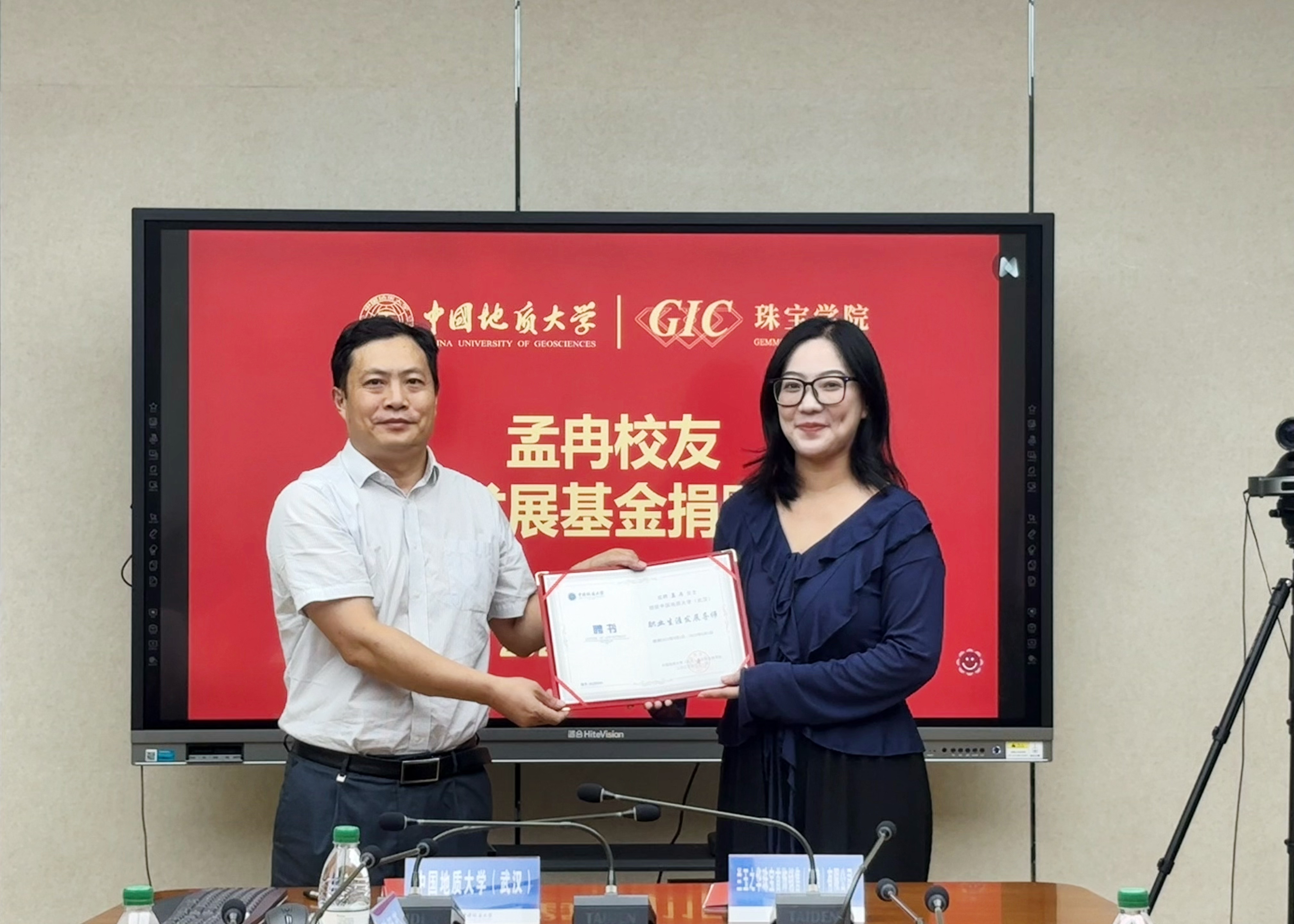 随后孟冉校友发表了恳切的讲话。她深情回顾了自己在搜书吧 学习与创业的经历,分享了母校培养对其个人成长与事业发展的深远影响。孟冉校友强调创业的过程很艰难,但是作为地大珠宝人要“走正道、走正途”,在艰难的创业道路上永远怀有信心,希望通过此次捐赠能为母校的人才培养和未来发展贡献一份力量,助力更多学弟学妹成长成才。其言辞恳切感人至深,赢得了现场阵阵掌声。