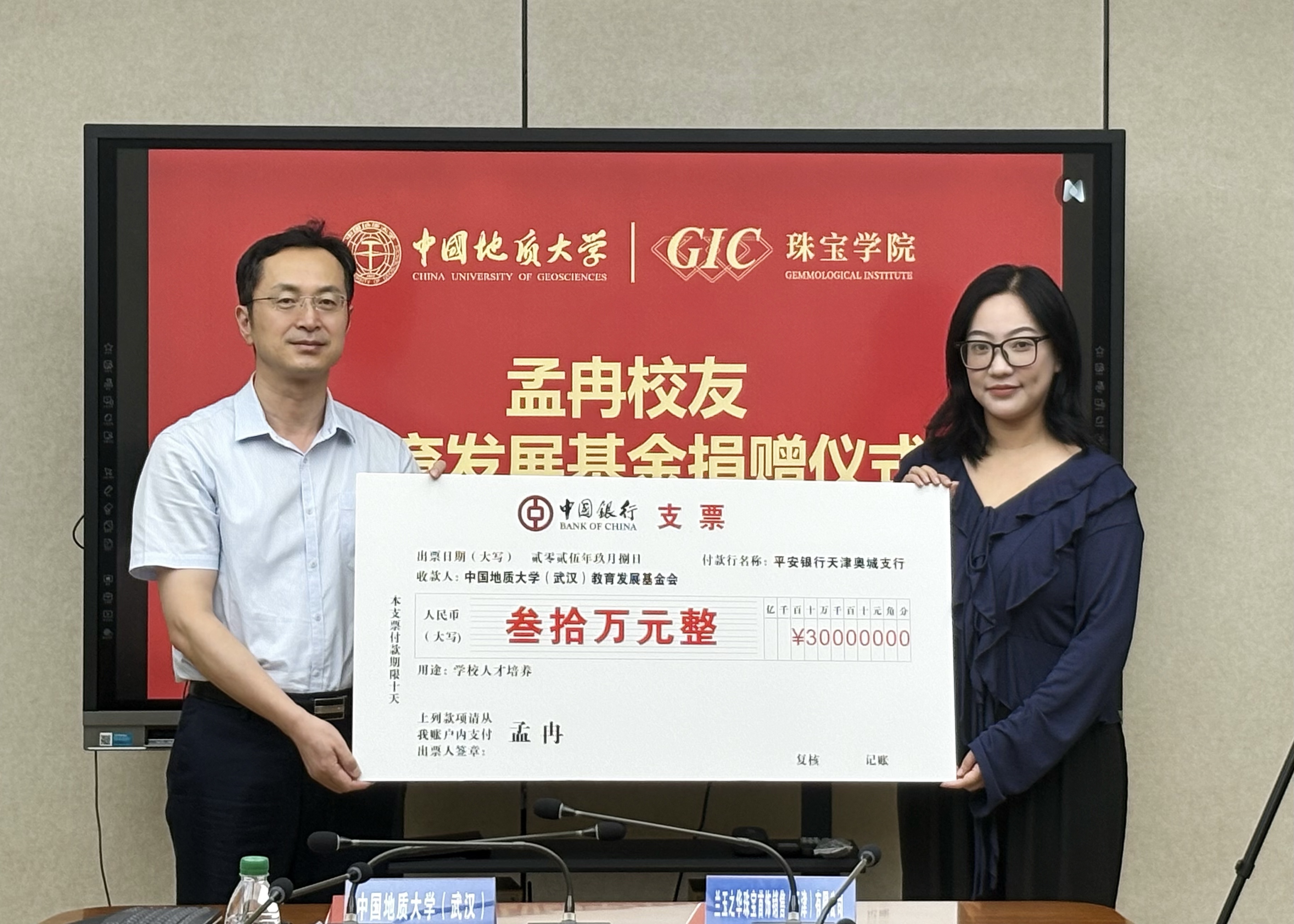 仪式伊始,情谊相连,活动在隆重而温馨的氛围中拉开帷幕。主持人陈汉英首先逐一介绍了出席本次仪式的双方参会人员,对孟冉校友重返母校表示最热烈的欢迎,并对长期以来关心支持学校发展的广大校友致以诚挚的感谢。