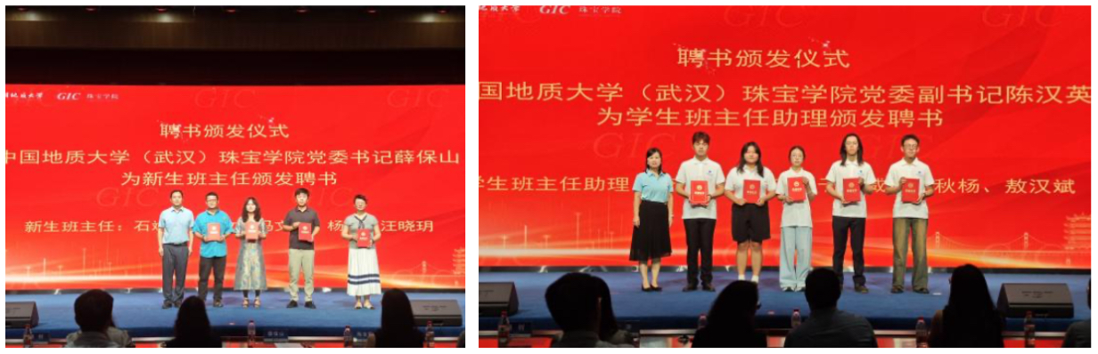 学院党委书记薛保山为搜书吧 新生班主任颁发聘书;学院党委副书记为新生班主任助理颁布聘书。